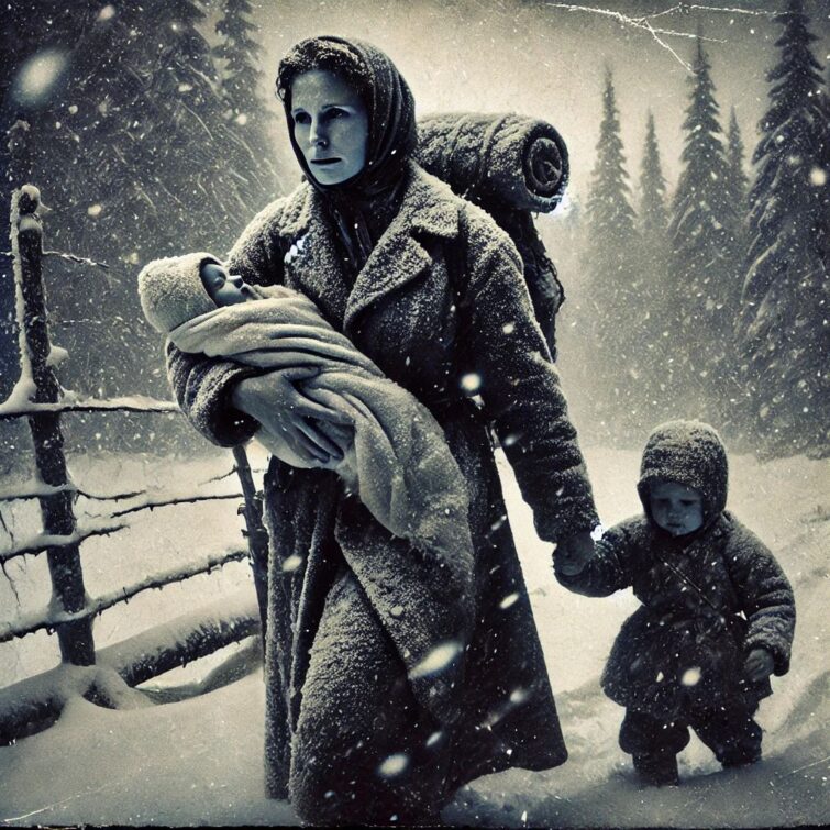 סבא רבא ברוך וסבתא רבתא מרים, שהתחתנו כשבע שנים קודם לכן, ניסו לברוח מפולין, והכל היה מאוד מסובך וקשה והדרך לבריחה הייתה רק באמצעות תשלומי שוחד, (לפעמים גם זה לא עזר). במהלך ניסיון הבריחה, סבא רבא נתפס ונשלח למחנה עבודה, סבתא רבתא הצליחה לברוח יחד עם סבא גרשון שהיה אז תינוק קטן ואחותו הגדולה שהייתה בת שש. במהלך הבריחה, אחותו  הגדולה של סבא גרשון, שהייתה רק בת שש מתה, מכיוון שלא היה להם די מזון בתקופת בריחתם.