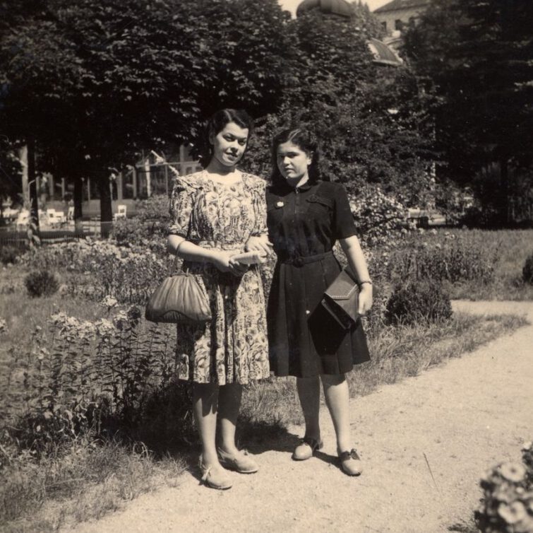 רות וטרזה מצולמות כאן לאחר השחרור ב-1947 בקירוב.